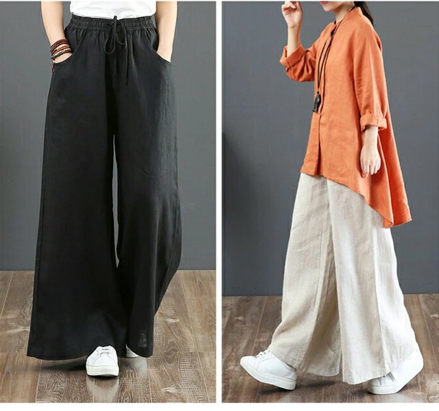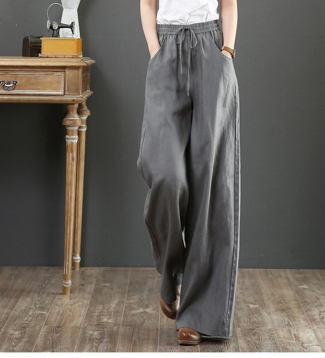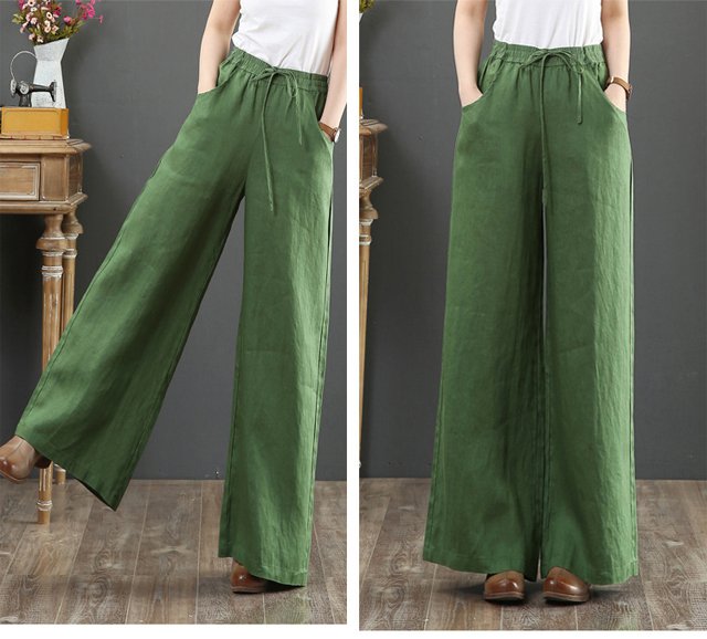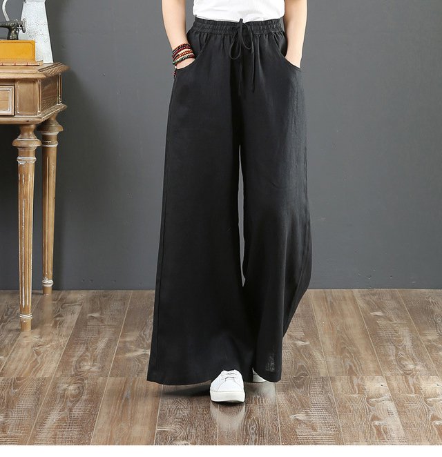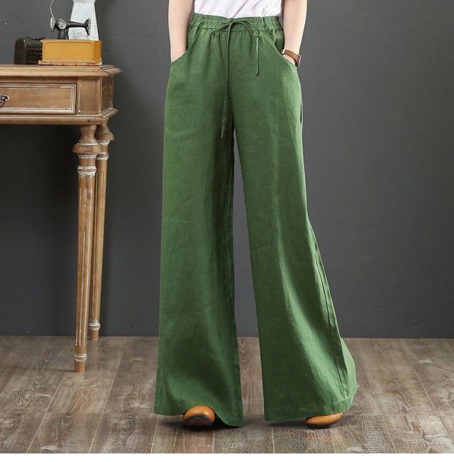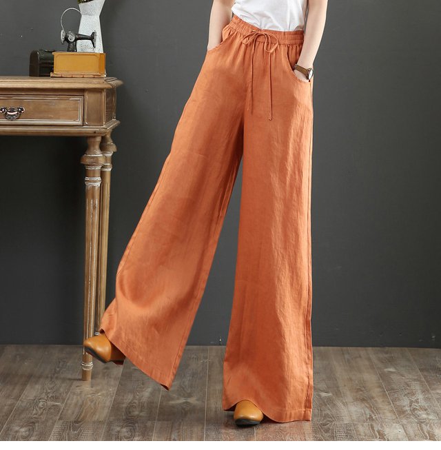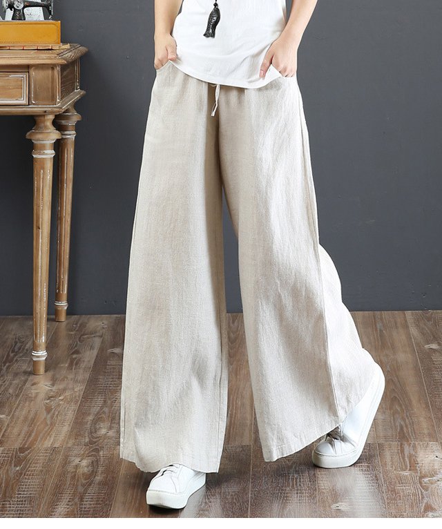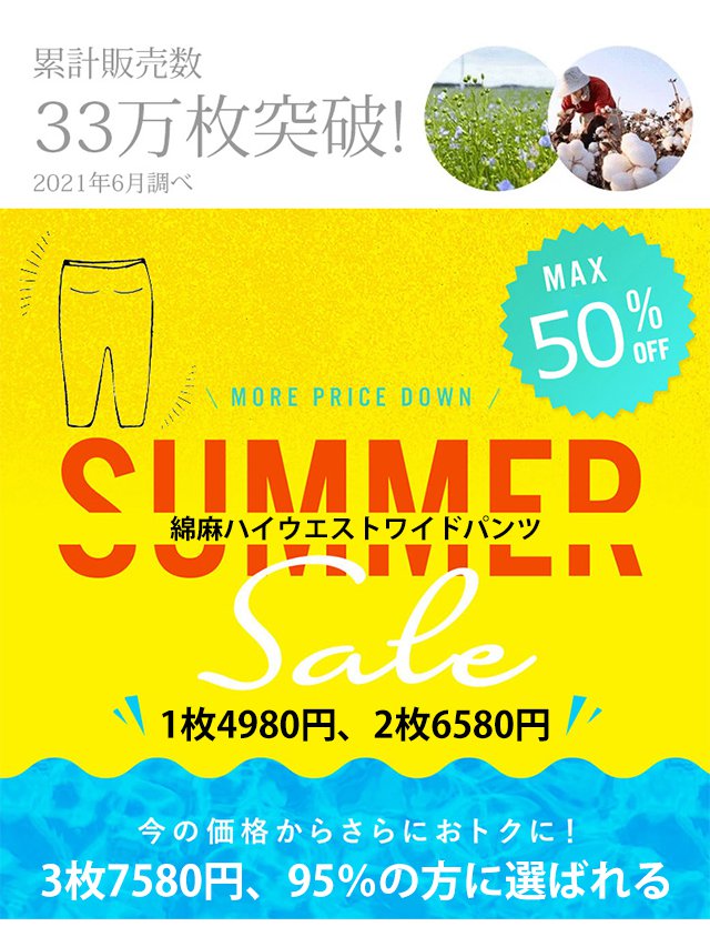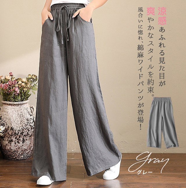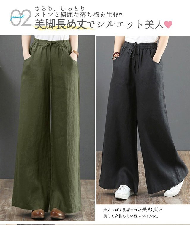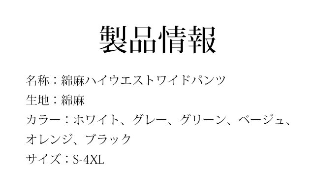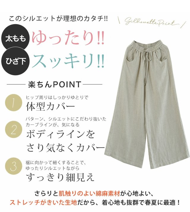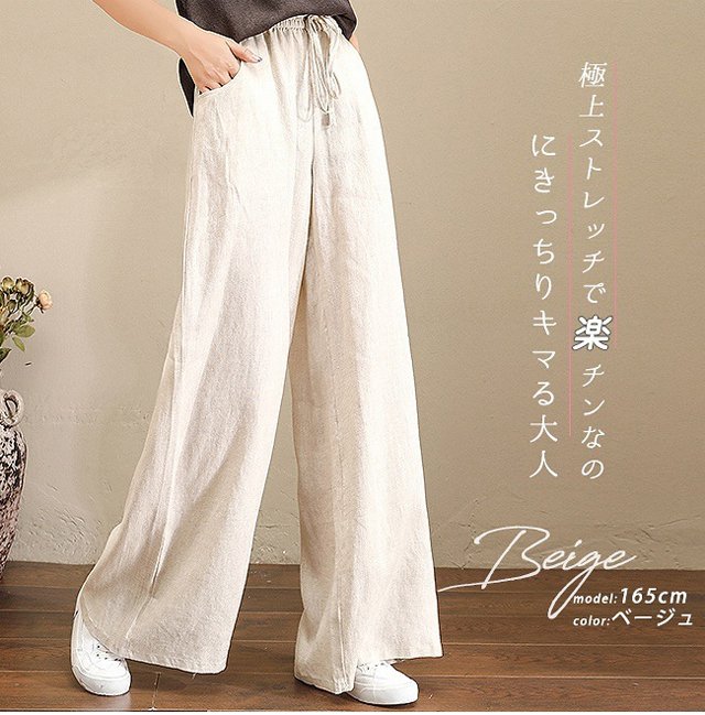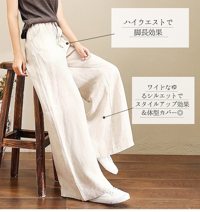綿麻ハイウエストワイドパンツ