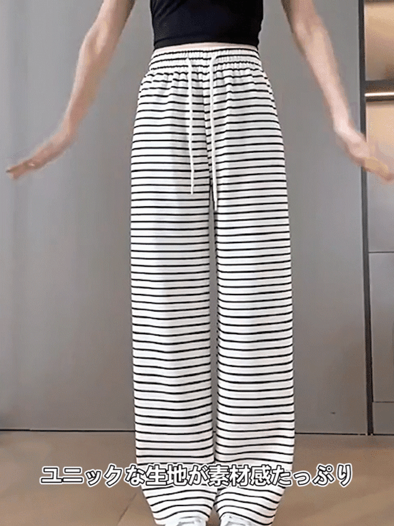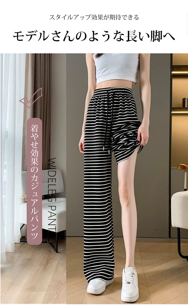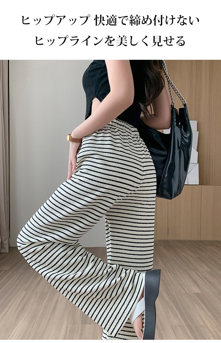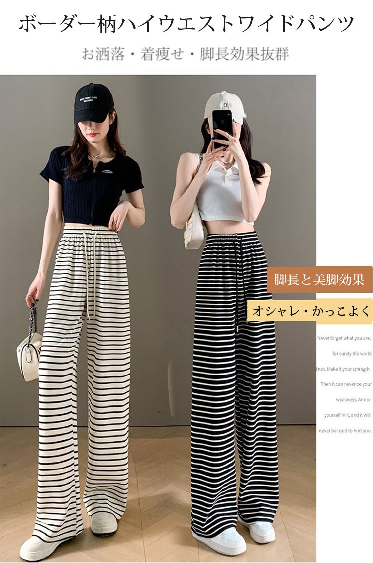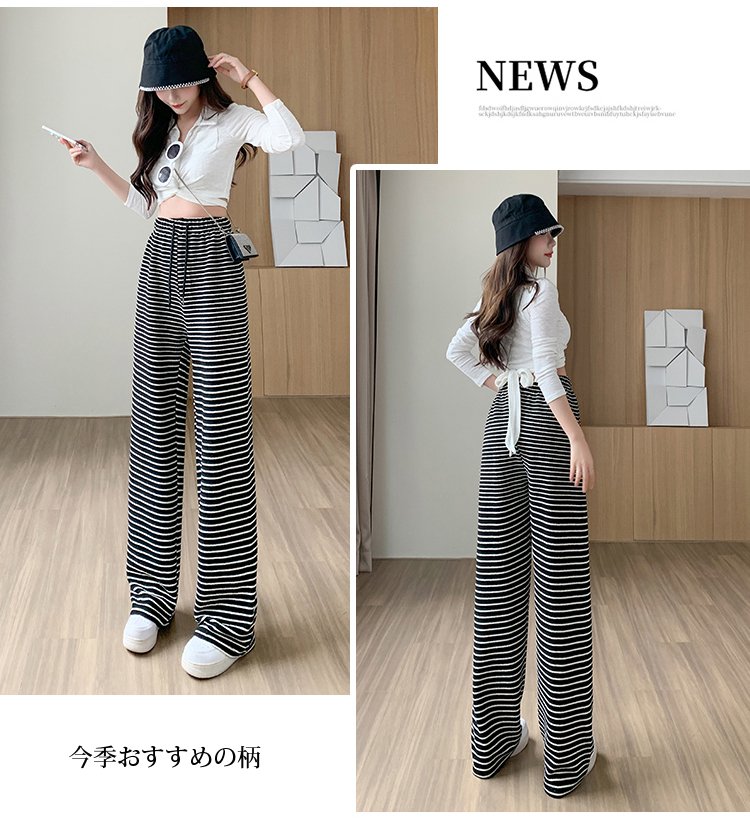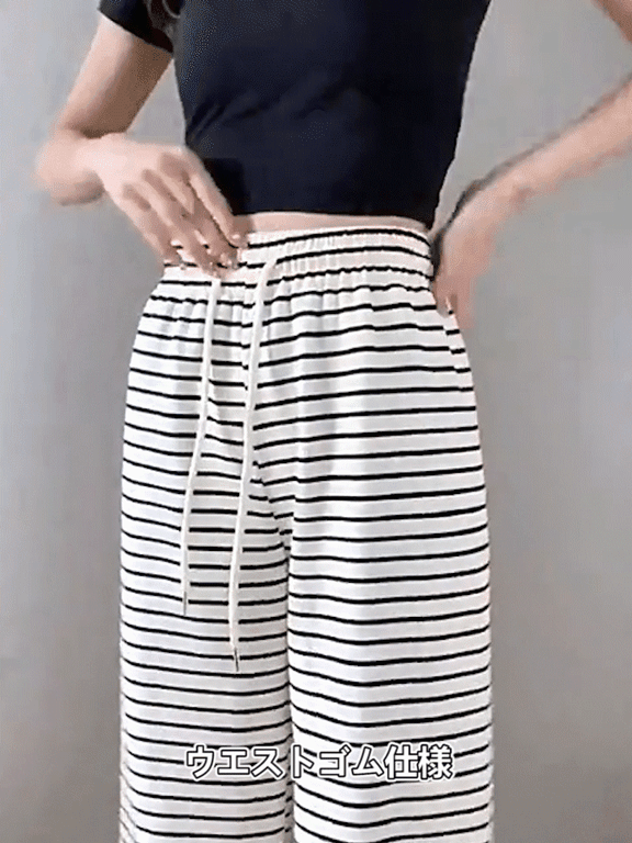 ボーダー柄ハイウエストワイドパンツ