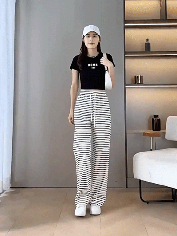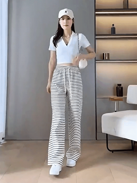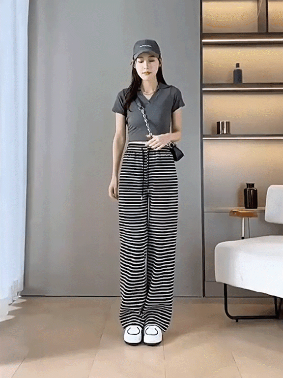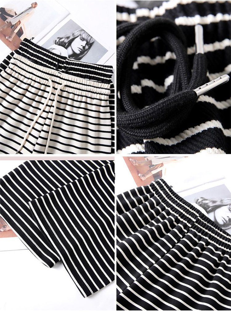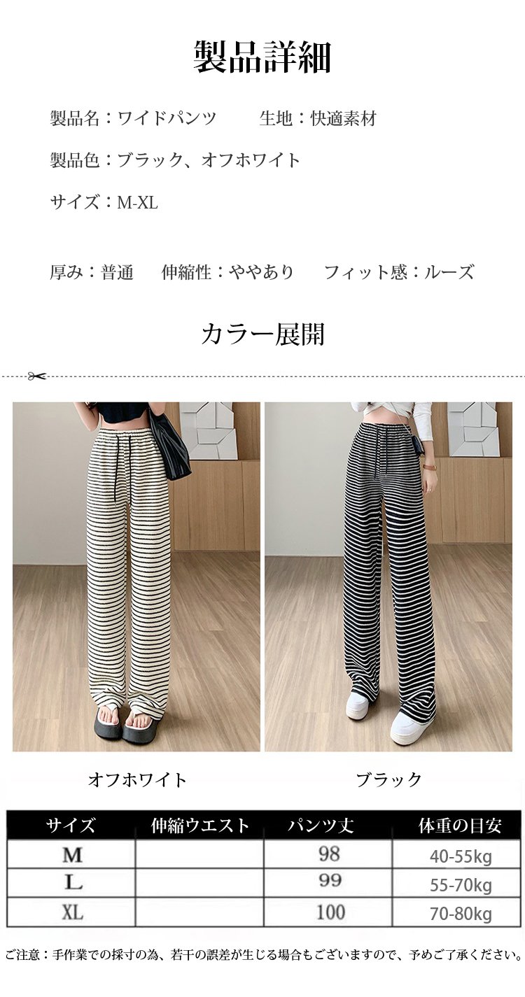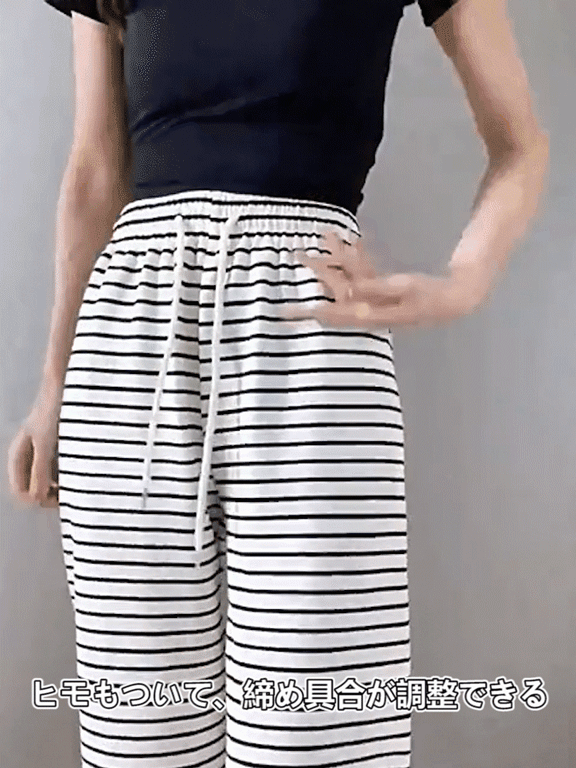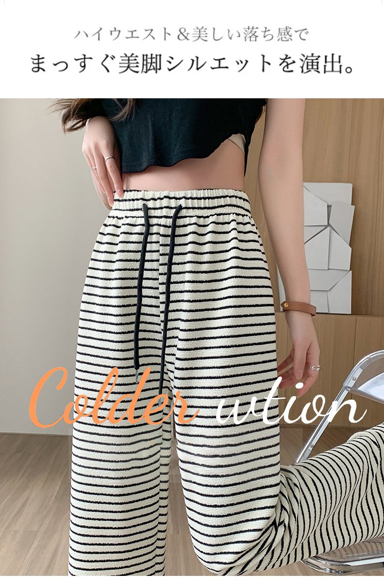 ボーダー柄ハイウエストワイドパンツ